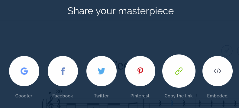 Нельзя не упомянуть, что некоторые возможности сродни облачным плюшкам Flat.io у MuseScore имеются. Произведение, что вы видите на скриншоте выше, я нашел среди опубликованных на сайте MuseScore. Здесь можно скачать документ MuseScore, PDF, знакомый вам MusicXML и вездесущие MIDI и MP3. Здесь же поделиться, встроить куда-либо или просто добавить в избранное, что, конечно, требует регистрации.