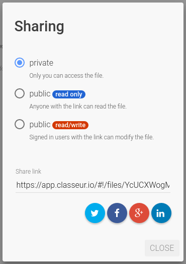 По умолчанию документ обозначен как private и доступен он только автору. Можно отметить его как публичный в режиме только для чтения. По полученной ссылке документ откроется в режиме просмотра без необходимости регистрации - то есть всем желающим. Третий режим позволяет открыть документ для всех с возможностью редактирования, но только для зарегистрированных пользователей.