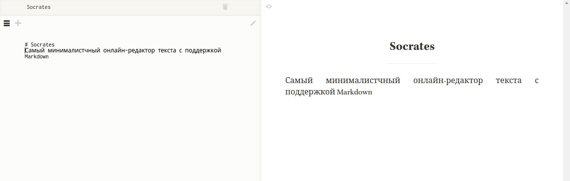 Socrates, пожалуй, самый минималистичный из подобного рода редакторов. Здесь нет даже настроек.