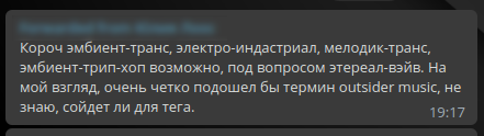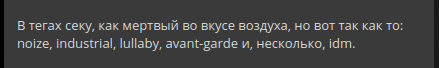 Попробуйте теперь представить, как звучит то, что описывают тэги на этих скриншотах. На мой взгляд или слух это вряд ли походило бы на то, что звучит на моей записи, хотя отдельные тэги весьма метки.